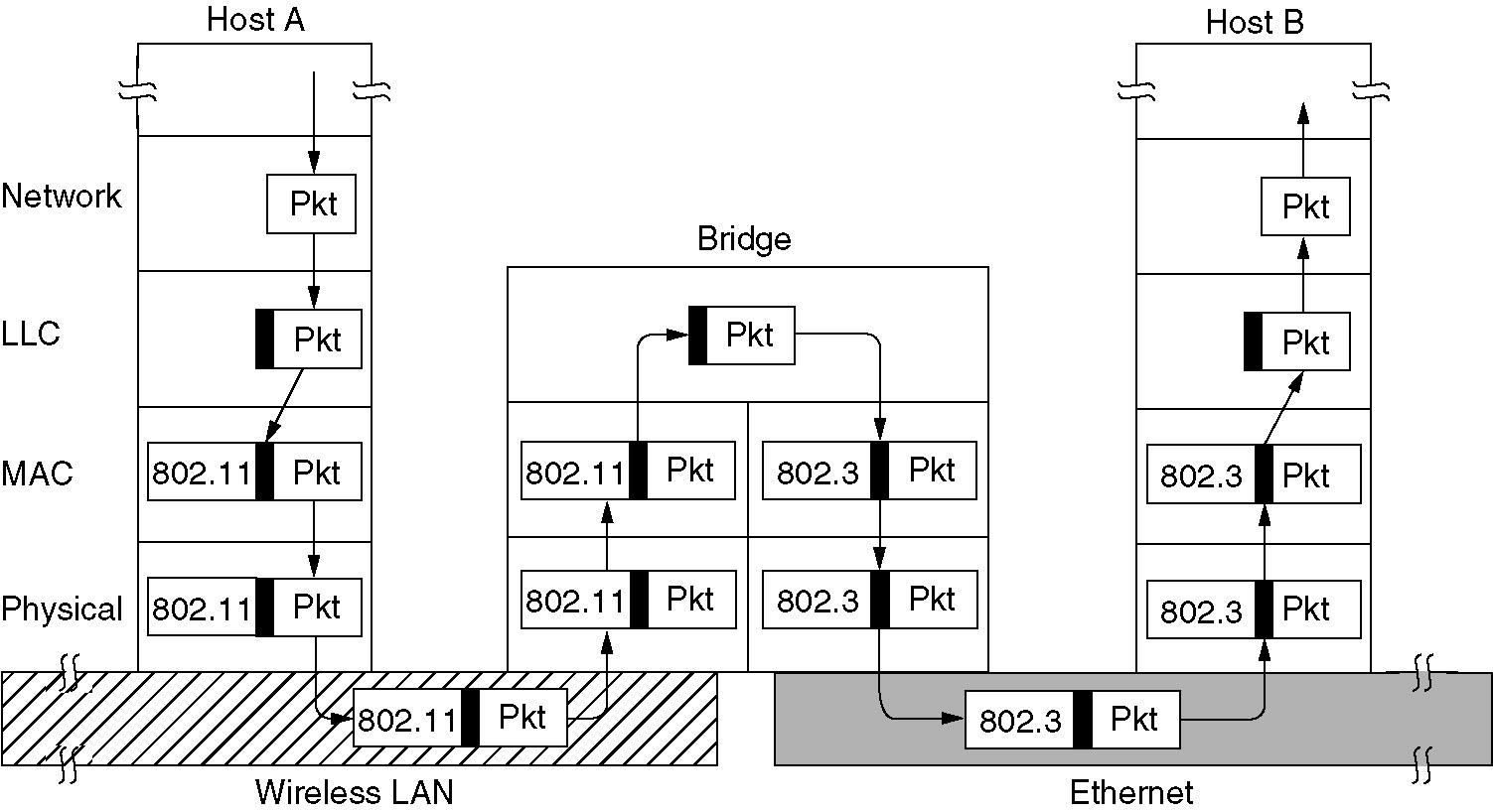 - Originally intended to be able to joint different kinds of LANs, but modern bridges usually work for one network type.