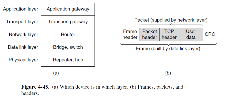 - Data link layer devices: bridge, switch